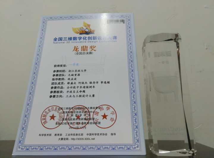 ,密切配合,发挥出色,参赛作品创意与功能受到评委充分肯定,其中由薛盛众、何俊杰、骆舟洋、章逸媚同学组成的无缺重器(全功能中长途移植车)团队(钱孟波老师指导),荣获工业与工程方向国家一等奖,由章凯、俞舸超、王远锋、陈武警同学组成的果蔬无忧(果蔬自动包装机)团队(钱孟波,姚立健老师指导)荣获工业与工程方向国家二等奖,系我校学生参加该赛事以来最好成绩。此前,代表队获得第九届全国三维数字化创新设计大赛浙江赛区特等奖2项,一等奖6项,二等奖9项,三等奖1项,省级赛区获奖队伍为历年最多。