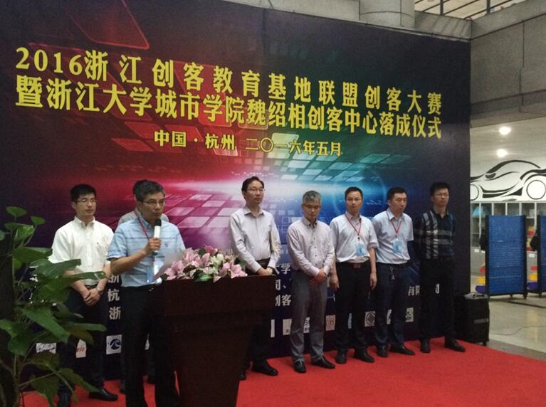 5月28日-5月30日,由我校和浙江大学城市学院共同承办的浙江创客教育基地联盟首届创客大赛在浙江大学城市学院隆重举行。清华大学李双寿教授、浙江大学周继烈理事长、我院副院长倪益华教授、浙江大学城市学院孙树礼教授、浙江工业大学之江学院杨友东教授、中国计量大学孙卫红教授、宁波大学王钢明高级工程师、浙江机电职业技术学院曹焕亚教授、绍兴文理学院王文奎教授、浙江海特科技孟圣民以及StarLab创客社区创始人黄凯等各行业专家、投资人为本次大赛评审老师,并特邀赵骞老师作为创客教育论坛主讲嘉宾。