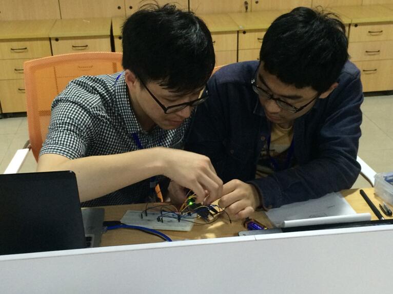 本次创客大赛以Health为主题,采用创客马拉松形式,参赛团队在48个小时内从创意构想、设计、制作、编程、测试到原型实现。共有来自全省12所高校,23支参赛队伍。我院由倪忠进、钱孟波等老师带队,由机械、信息等专业学生组成了尘光、暖心的水杯和懒癌患者拯救世界三支参赛队伍参加了本次创客大赛。他们利用arduino开源软硬件、好好搭搭在线编程平台以及3D打印机、激光切割机等设备,通过48小时废寝忘食的工作,分别制作出智能调光窗、智能远程开关和智慧健康水杯等创意作品,获得了实用优胜奖和创新优胜奖。同时,被推荐参加6月份在温州举行的中美青年创客大赛温州分赛区选拔赛。